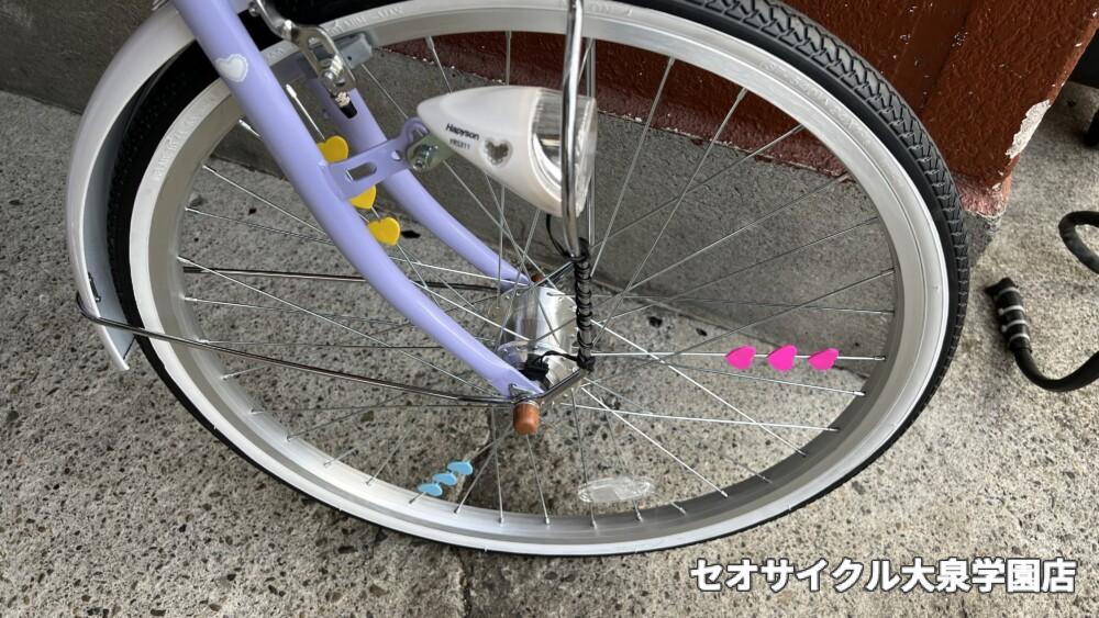 車輪にかわいいハート形のアクセサリーがついています!