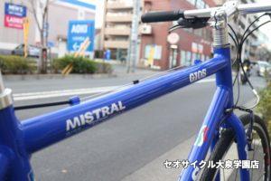 当店でも人気のミストラルですが 最近は主流のアルミフレームではなくクロモリ(鉄)フレームのお問合せも多数いただいてます 写真では分かり難いですがアルミに比べフレームのパイプが細くなっていて、よりスッキリした印象になってい …